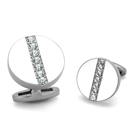 High polished (no plating) Stainless Steel Cufflink with Top Grade Crystal in Clear