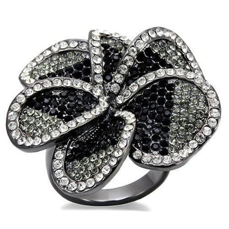 TIN Cobalt Black Brass Ring with Top Grade Crystal in Jet