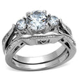 High polished (no plating) Stainless Steel Ring with AAA Grade CZ in Clear
