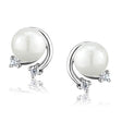 Rhodium Brass Earrings with Synthetic Pearl in White