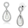 Rhodium Brass Earrings with Synthetic Pearl in White