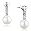 Rhodium Brass Earrings with Synthetic Pearl in White