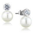 Rhodium Brass Earrings with Synthetic Pearl in White