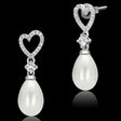 Rhodium 925 Sterling Silver Earrings with Synthetic Pearl in White