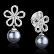 Rhodium 925 Sterling Silver Earrings with Synthetic Pearl in Light Gray