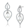 Rhodium 925 Sterling Silver Earrings with Semi-Precious Glass Bead in White