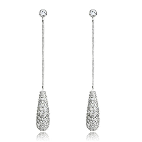 Rhodium Brass Earrings with AAA Grade CZ in Clear