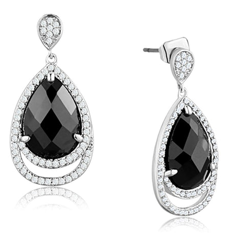 Rhodium Brass Earrings with AAA Grade CZ in Jet