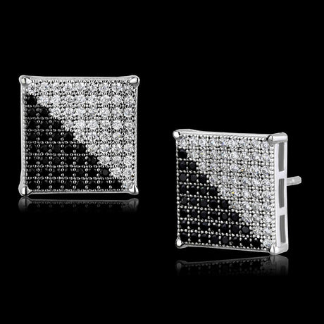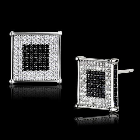 Rhodium + Ruthenium 925 Sterling Silver Earrings with AAA Grade CZ in Black Diamond