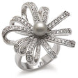 Rhodium Brass Ring with Synthetic Pearl in Gray
