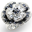 High-Polished 925 Sterling Silver Ring with AAA Grade CZ in Jet