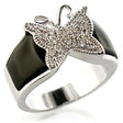 Rhodium Brass Ring with Semi-Precious Onyx in Jet