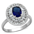 Rhodium Brass Ring with Synthetic Synthetic Glass in Sapphire