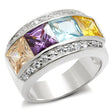 Rhodium Brass Ring with AAA Grade CZ in Multi Color