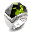 Rhodium 925 Sterling Silver Ring with AAA Grade CZ in Olivine color
