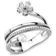 High polished (no plating) Stainless Steel Ring with Synthetic Pearl in White