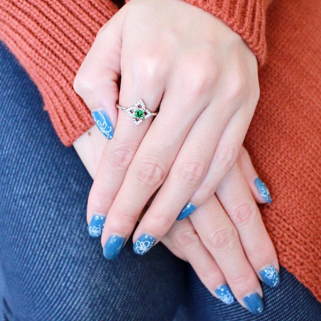 High polished (no plating) Stainless Steel Ring with AAA Grade CZ in Emerald - 5 is backordered and will ship as soon as it is back in stock.