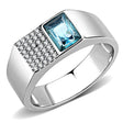 High polished (no plating) Stainless Steel Ring with Synthetic in Sea Blue