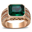 IP Rose Gold(Ion Plating) Brass Ring with Synthetic Synthetic Glass in Blue Zircon