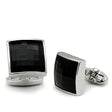 Rhodium Brass Cufflink with Synthetic Synthetic Glass in Jet