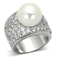Rhodium Brass Ring with Synthetic Pearl in White