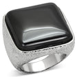Rhodium Brass Ring with Semi-Precious Agate in Jet
