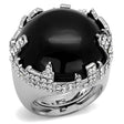 Rhodium Brass Ring with Synthetic Cat Eye in Jet