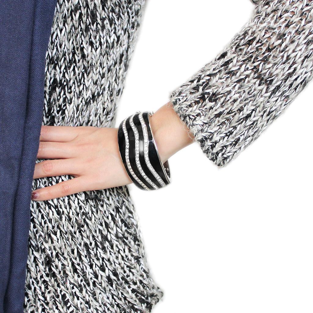 Rhodium Brass Bangle with Top Grade Crystal in Clear