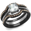IP Black(Ion Plating) Stainless Steel Ring with AAA Grade CZ in Clear
