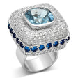 Rhodium Brass Ring with Synthetic Spinel in London Blue