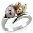 Rhodium 925 Sterling Silver Ring with Synthetic Pearl in Multi Color