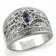 Rhodium 925 Sterling Silver Ring with AAA Grade CZ in Amethyst