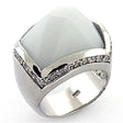 Rhodium 925 Sterling Silver Ring with Synthetic Synthetic Glass in White
