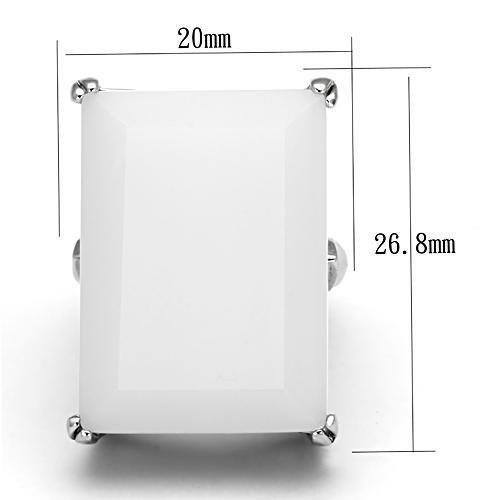 Rhodium 925 Sterling Silver Ring with Synthetic Synthetic Glass in White
