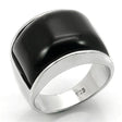 Rhodium 925 Sterling Silver Ring with Synthetic Synthetic Glass in Jet