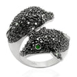 Rhodium + Ruthenium 925 Sterling Silver Ring with Synthetic Synthetic Glass in Emerald