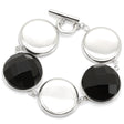 Rhodium 925 Sterling Silver Bracelet with Semi-Precious Agate in Jet