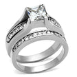 High polished (no plating) Stainless Steel Ring with AAA Grade CZ in Clear