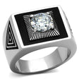 High polished (no plating) Stainless Steel Ring with AAA Grade CZ in Clear