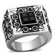 High polished (no plating) Stainless Steel Ring with Synthetic Synthetic Glass in Jet