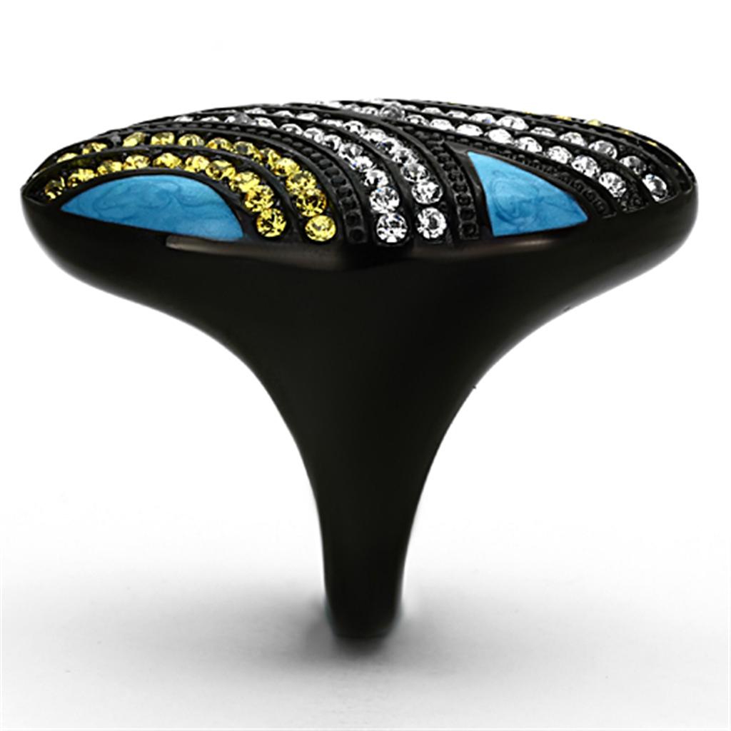 IP Black(Ion Plating) Stainless Steel Ring with Top Grade Crystal in Citrine Yellow