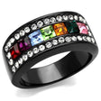 IP Black(Ion Plating) Stainless Steel Ring with Top Grade Crystal in Multi Color