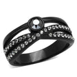IP Black(Ion Plating) Stainless Steel Ring with Top Grade Crystal in Hematite