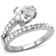 High polished (no plating) Stainless Steel Ring with AAA Grade CZ in Clear
