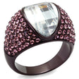 IP Dark Brown (IP coffee) Stainless Steel Ring with AAA Grade CZ in Clear