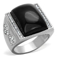 High polished (no plating) Stainless Steel Ring with Synthetic Synthetic Glass in Jet