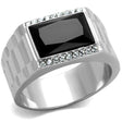 High polished (no plating) Stainless Steel Ring with Synthetic Onyx in Jet