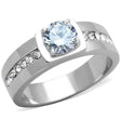 High polished (no plating) Stainless Steel Ring with AAA Grade CZ in Clear