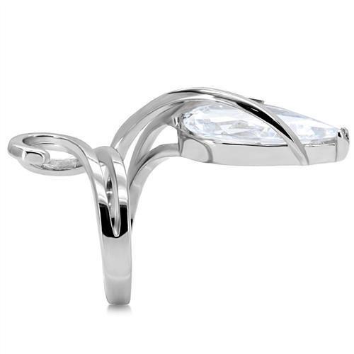 High polished (no plating) Stainless Steel Ring with AAA Grade CZ in Clear
