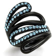 IP Black(Ion Plating) Stainless Steel Ring with Top Grade Crystal in Sea Blue